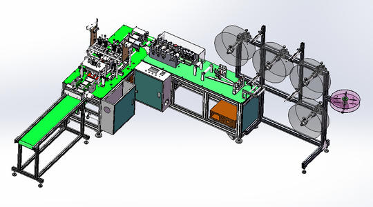 全自动生产线是用成卷的无纺布,通过口罩本体机自动切割成口罩的外形,自动叠压后,通过口罩耳带机或口罩绑带机处自动焊接耳带,经过消毒等程序,最后包装成品。