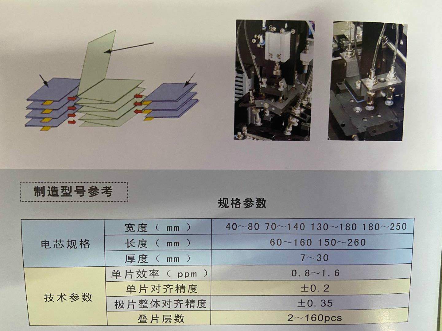 1.将正负极片装入料盒,自动计数叠片、自动压紧、自动贴终止胶带;